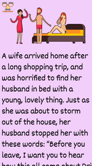 A wife arrived home after a long shopping trip, and was horrified to find her husband in bed with a young, lovely thing.